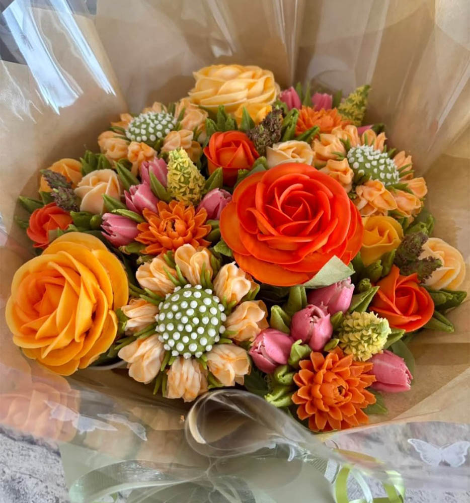 A stunning bouquet of 12 beautifully decorated cupcakes, arranged like fresh blooms. Ideal for birthdays, anniversaries, or special surprises. Custom flavors, colors, and allergy-friendly options are available upon request.